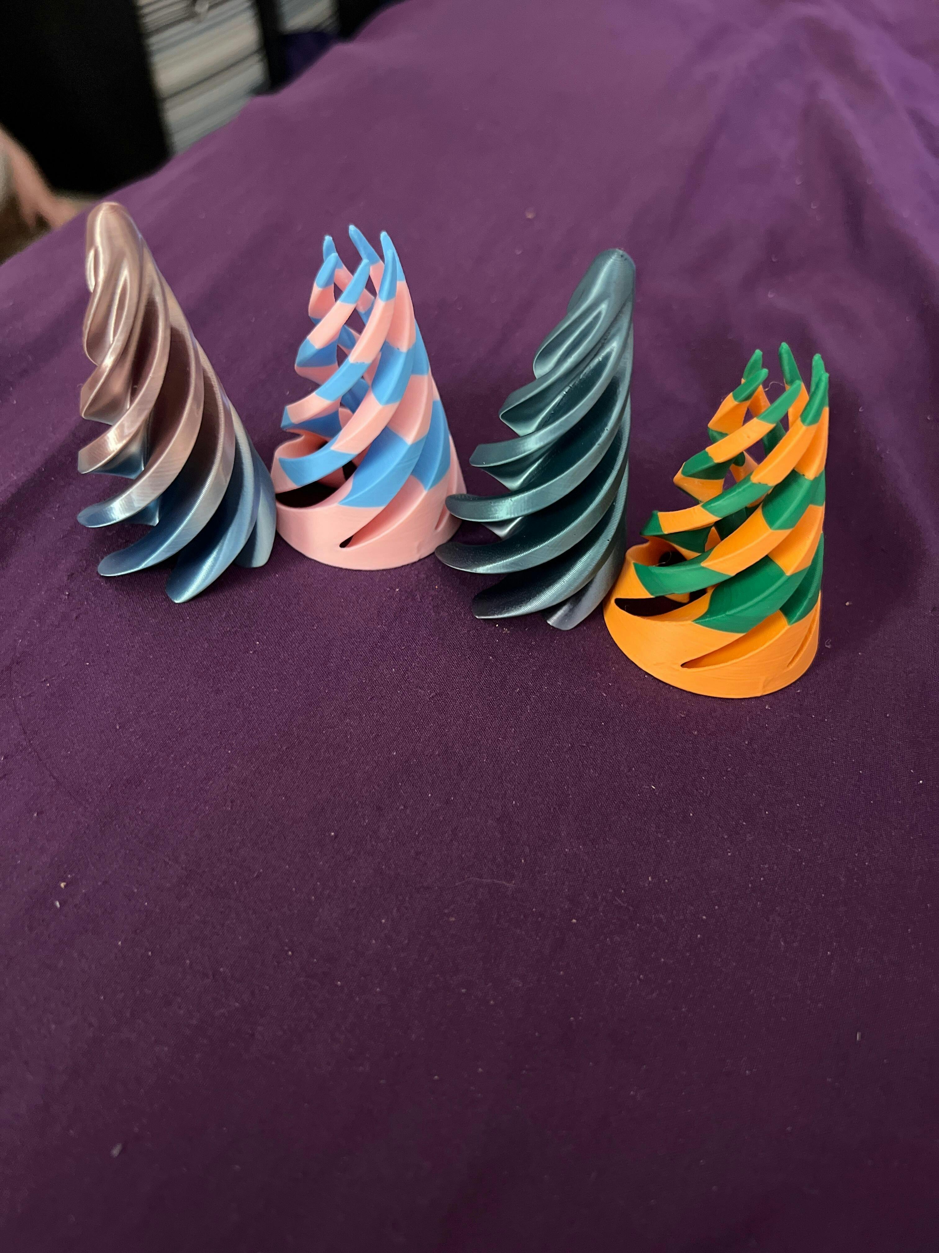 Spiral Fidget that is rather addicting to use. These are designed in 2 separate sections that combine into one spiral. The sections completely pass through one another no matter if they are both facing upward or if one is facing downward.